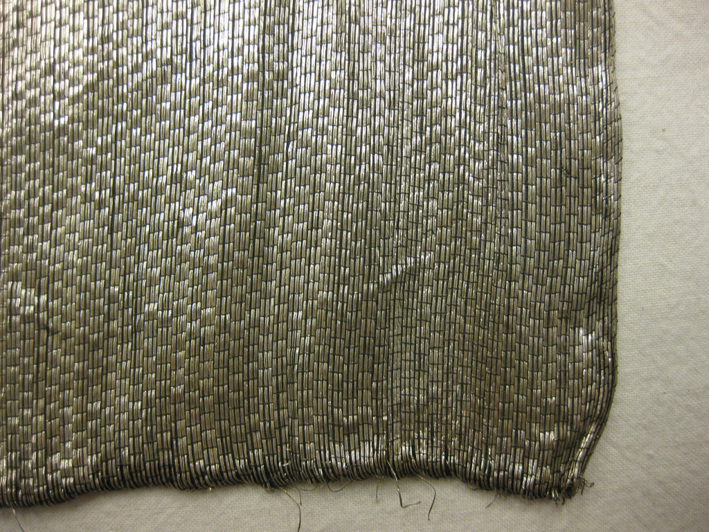 Chemise, ca. 1923; detail of weave showing thick metallic yarn.