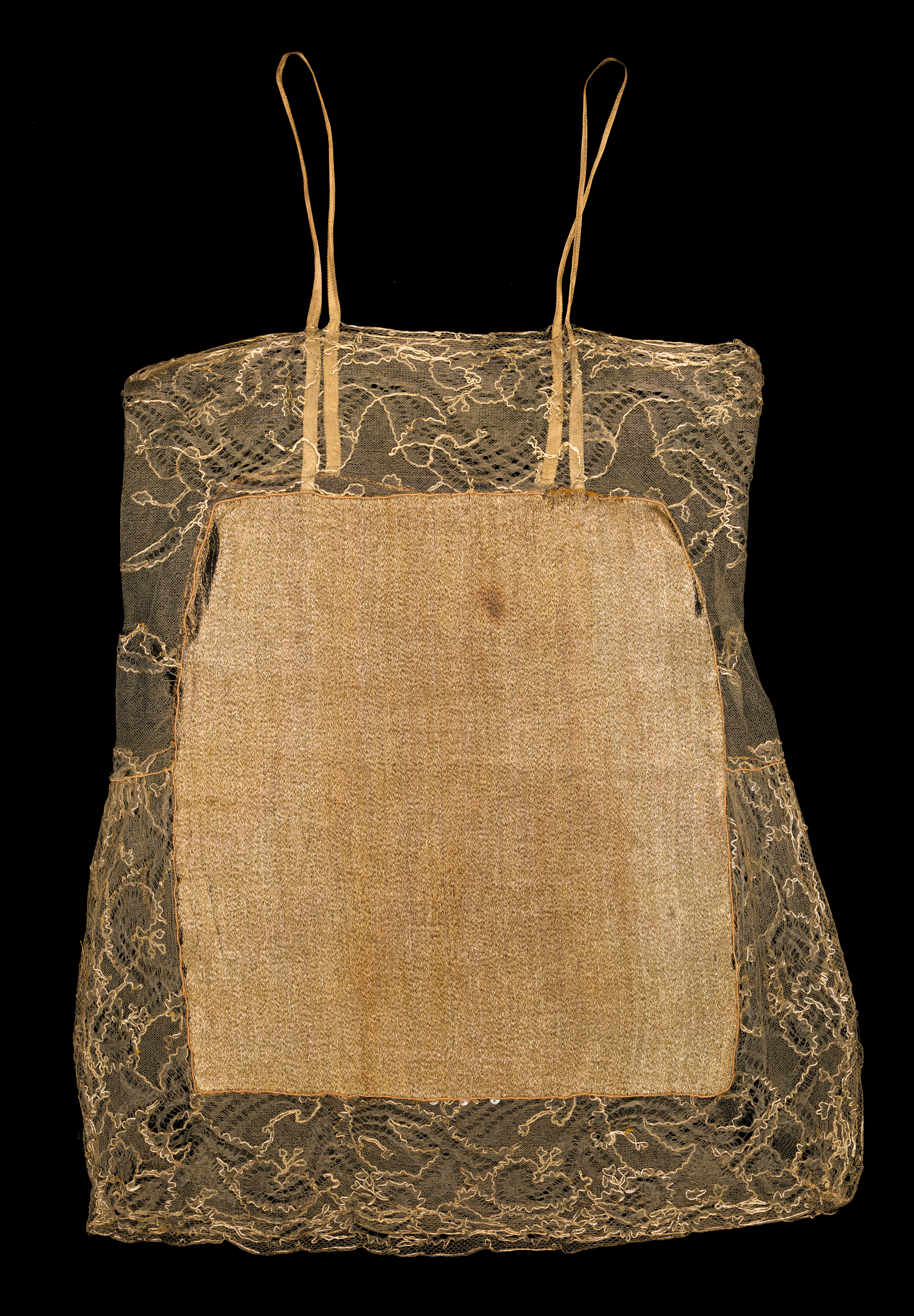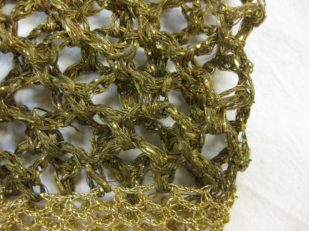 Chemise, ca. 1923; eight bundles of fiber wrapped in very thin metal tape were used to create this extra-large yarn.