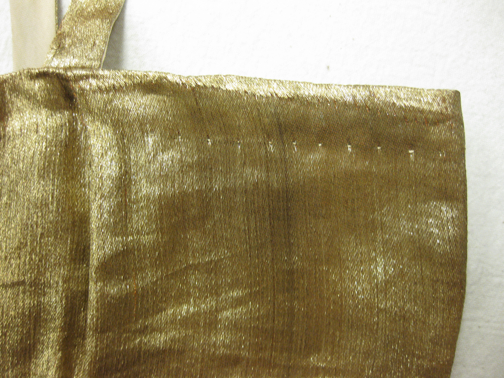 Through the ages, gold and other precious metals have been used in the creation of textiles to elevate their symbolic importance. For conservators, fabrics incorporating metallic components raise complex questions about construction, materials, and manufacturing techniques, all of which impact how an object will be stabilized and displayed. Working on the exhibition Golden Glamour, organized by associate curator Laurie Brewer, sparked my interest in exploring metallic yarns. The metallic-heavy garments worn by Edith Stuyvesant Dresser Vanderbilt Gerry in the 1920s and ’30s, many of which were recently deinstalled from our Donghia Costume and Textiles Gallery, offered an excellent springboard for exploration during a bit of down-time this summer, between exhibitions. My initial research questions were very general: What kind of metallic yarns were used on Edith Gerry’s garments, and how do these examples fit into a larger narrative about metallic-yarn production and use?