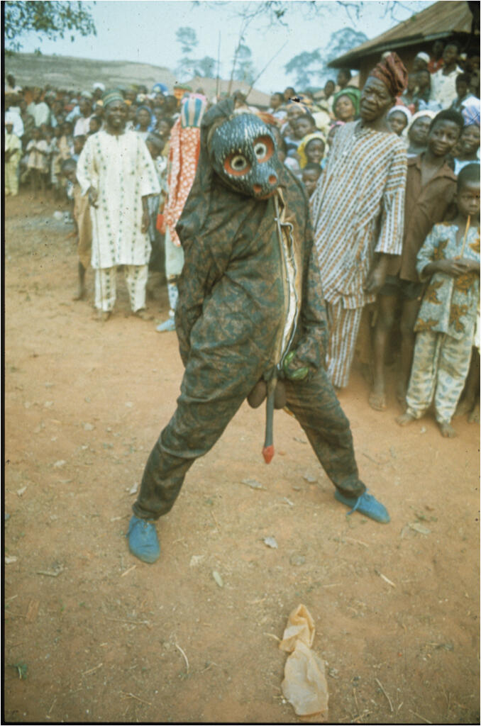 For the Yorùbá, these performances are serious business. At the same time, they are also serious play (eré), for the Yorùbá create elaborate multimedia and multisensorial events that are meant to please and honor ancestors who, like all of us, enjoy homage and respect, as well as a good laugh. Thus many Egúngún ensembles impress with their sumptuous materials and symbols of spiritual power and prestige, while others provoke laughter in their humorous or satiric portrayal of human (and divine) foibles. The Yorùbá strive to put on a good multisensorial spectacle (àwòrán), a party for their departed family and community members. For the Yorùbá, the playfulness and surprise of improvisation are essential for the success of any artistic endeavor, whether object or event. To invite the return of ancestors is to play with forms and ideas in order to make audiences think in new ways about their world: not only about their shared past and imagined future, but about themselves and the conduct of their mortal lives.