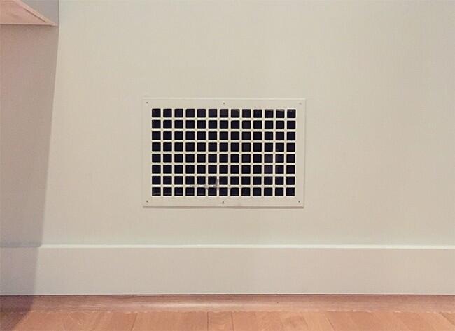 A nod to Marcel Duchamp, who revolutionized the art world in the early twentieth century when he signed a urinal and called it art, this book represents a subversion of the conventional ways of seeing and aesthetic propositions. By means of careful framing and deliberate juxtaposition, the book brings to the foreground the ventilation grilles, which are almost always overlooked—most people are completely unaware of their presence in the galleries—encouraging a perceptual shift and rejection of the blind embrace of the accepted definitions of art and beauty. If you enjoy the formal relationships of simple lines and geometric shapes that a Sol LeWitt or a Donald Judd might offer, there is no reason you cannot appreciate these ventilation grilles, especially given their often fascinating placements. (In the RISD Museum’s Paula and Leonard Granoff Galleries, ventilation grilles are in close proximity to works by John McCraken and Bridget Riley.) It is only when you relinquish your preconceived ideas and expectations that you open yourself up to surprising encounters. Beauty can be found everywhere, even in the most mundane of objects, if only you can see them.