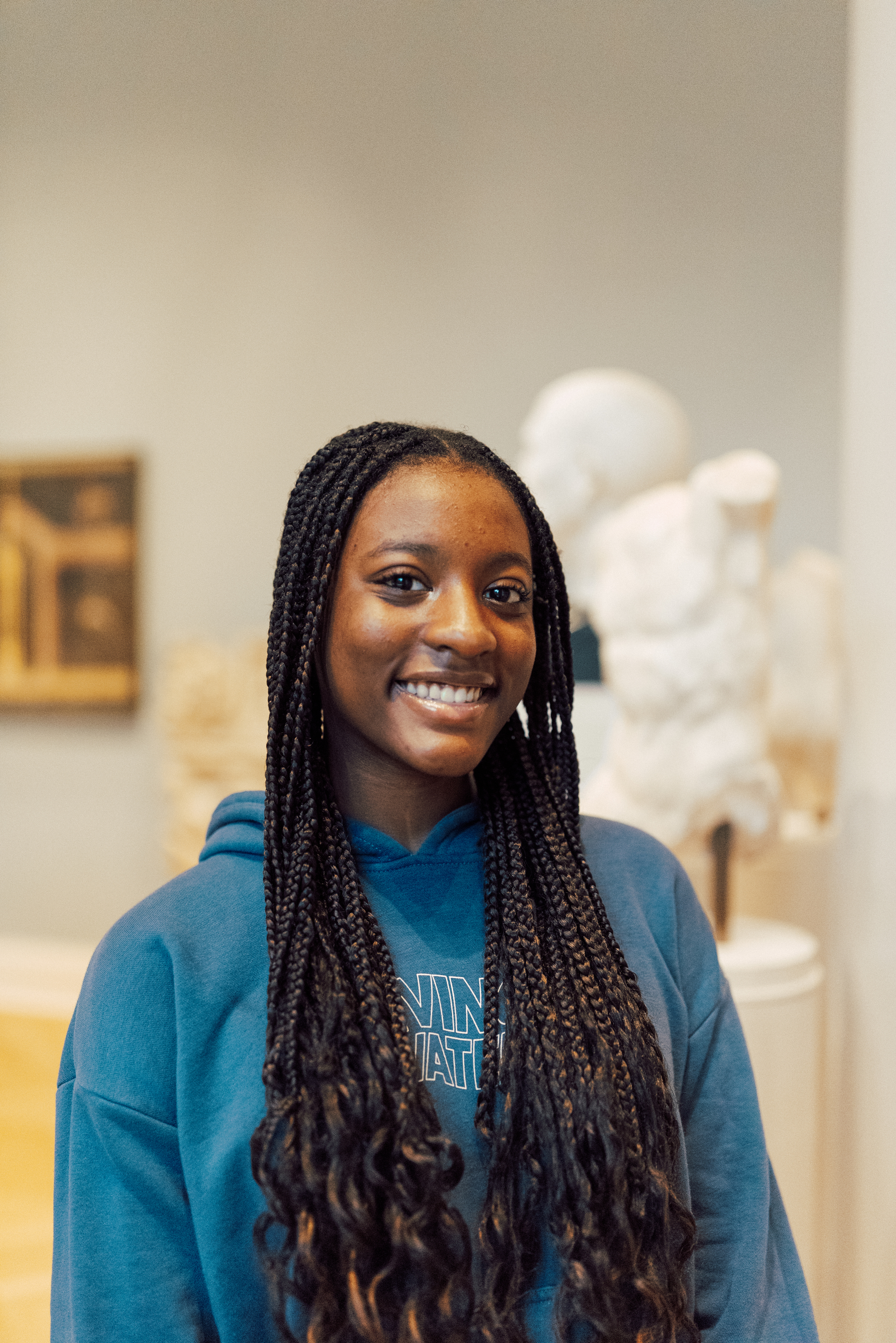 | Alaina (she/her) is an artistic nerd who can talk all day about the trip she took to Ivory Coast. She is someone who enjoys listening to jazz, RnB, and neo soul while creating art. She enjoys hanging out with friends and family in her free time. |