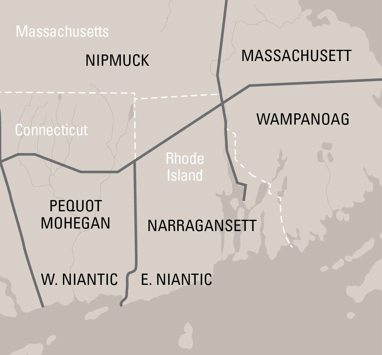 After 1676: The Narragansett and Niantic unite as one people. Indigenous people of New England suffer enslavement, displacement, and centuries of forced cultural assimilation