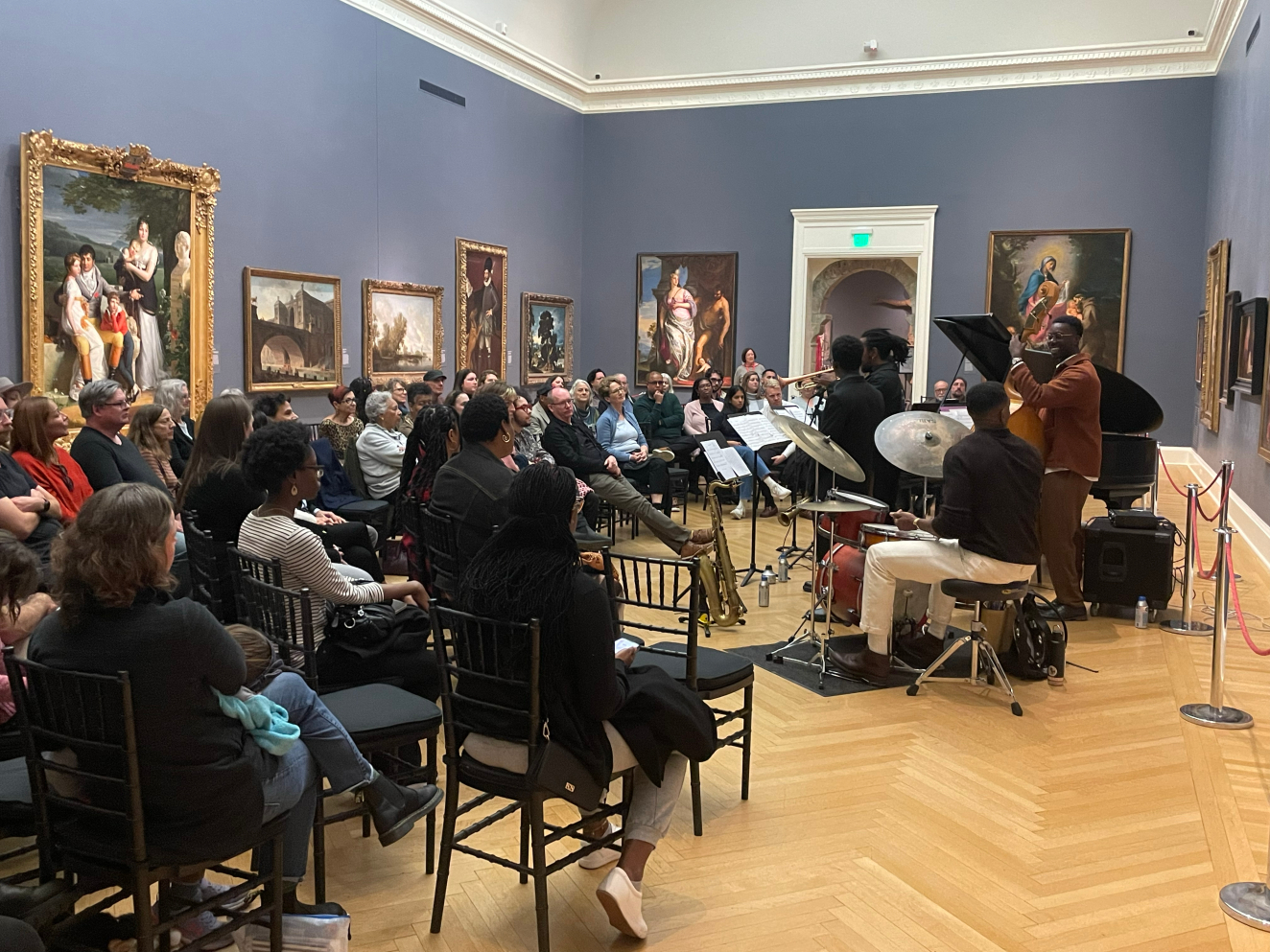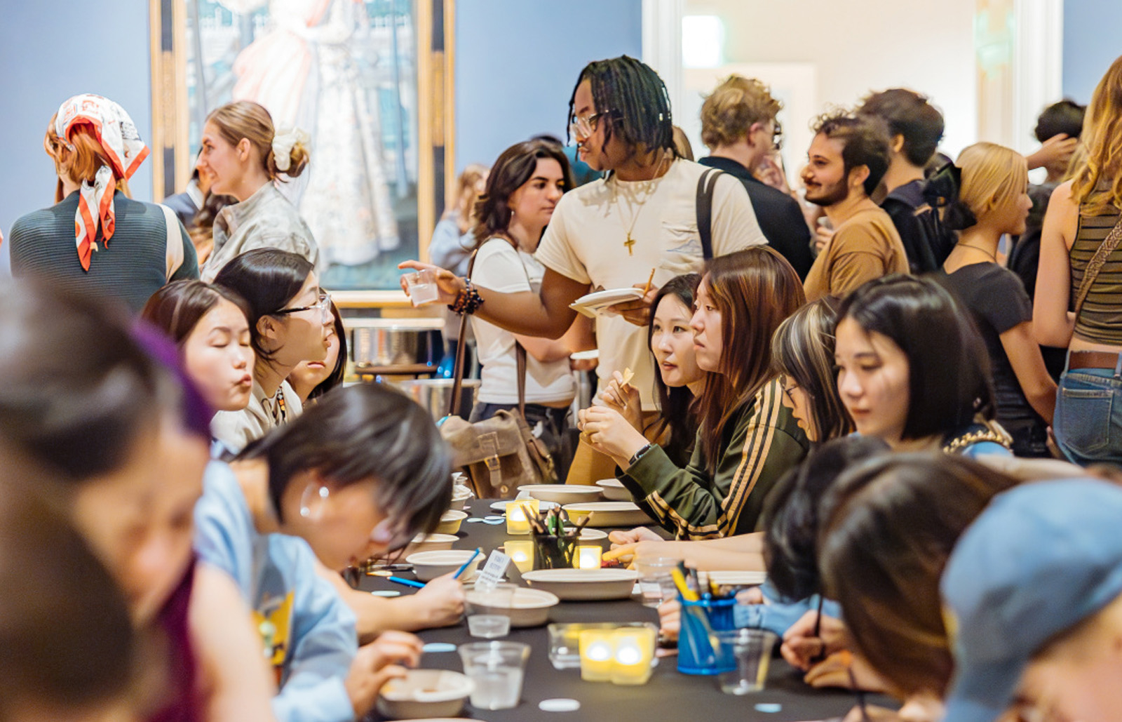 The Museum Guild designed moments of joy and connection for college audiences and beyond. “Dinner Party” invited visitors to curate a “menu” of artworks, while “Wish You Were Here” featured a postcard exchange. The year concluded with “Ballroom Bash,” created with Rhode Island College’s Ballroom Dance Club and RISD clubs Mango Street and Black Artists and Designers. Workshops in cha-cha and vogueing (with local performer Nielle Taylor) filled the space with energetic participation from students, faculty, and young visitors.