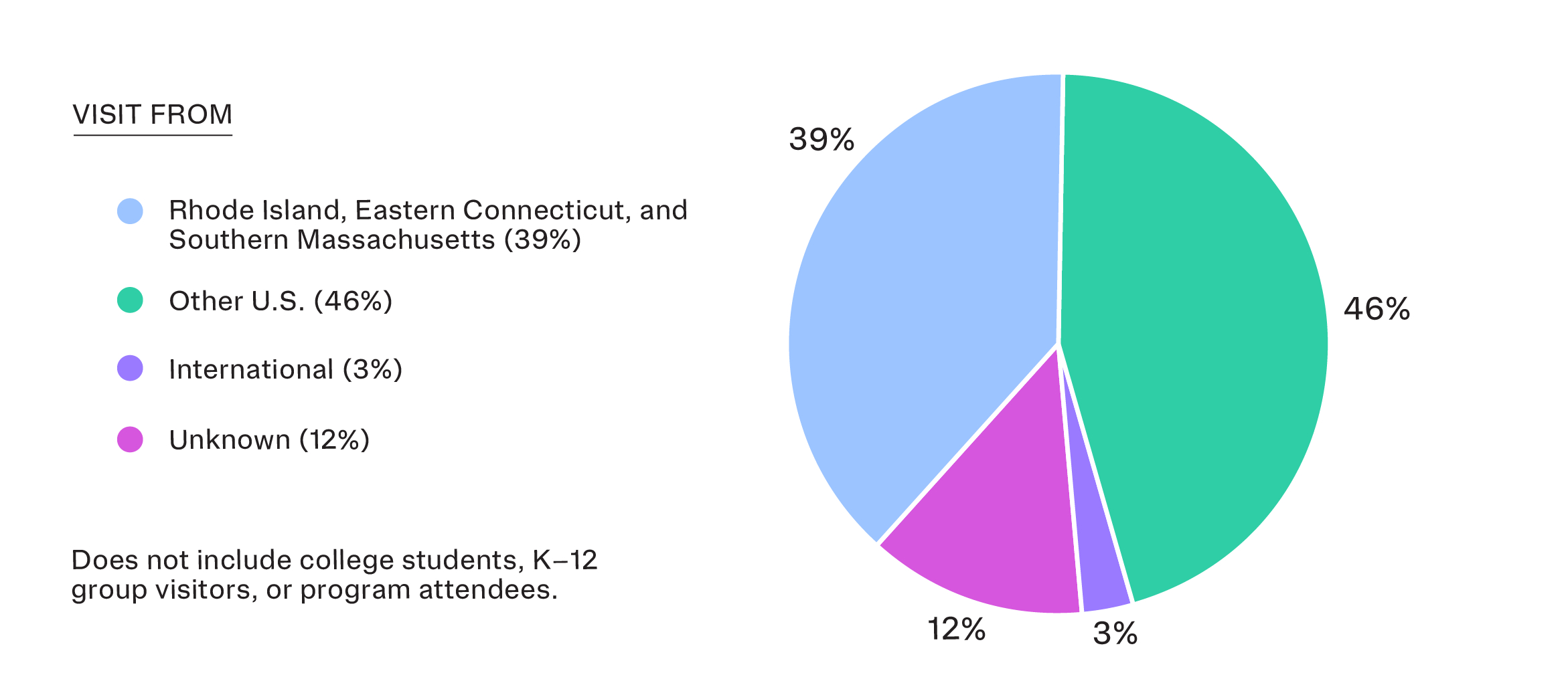 We ensure access by committing a portion of our annual budget to provide busing services to public and charter schools in Providence and Title 1 schools throughout Rhode Island. In addition to local students, the museum was visited by groups from as far away as Maine, Vermont, Vancouver, and China. To interact with the map, click here.